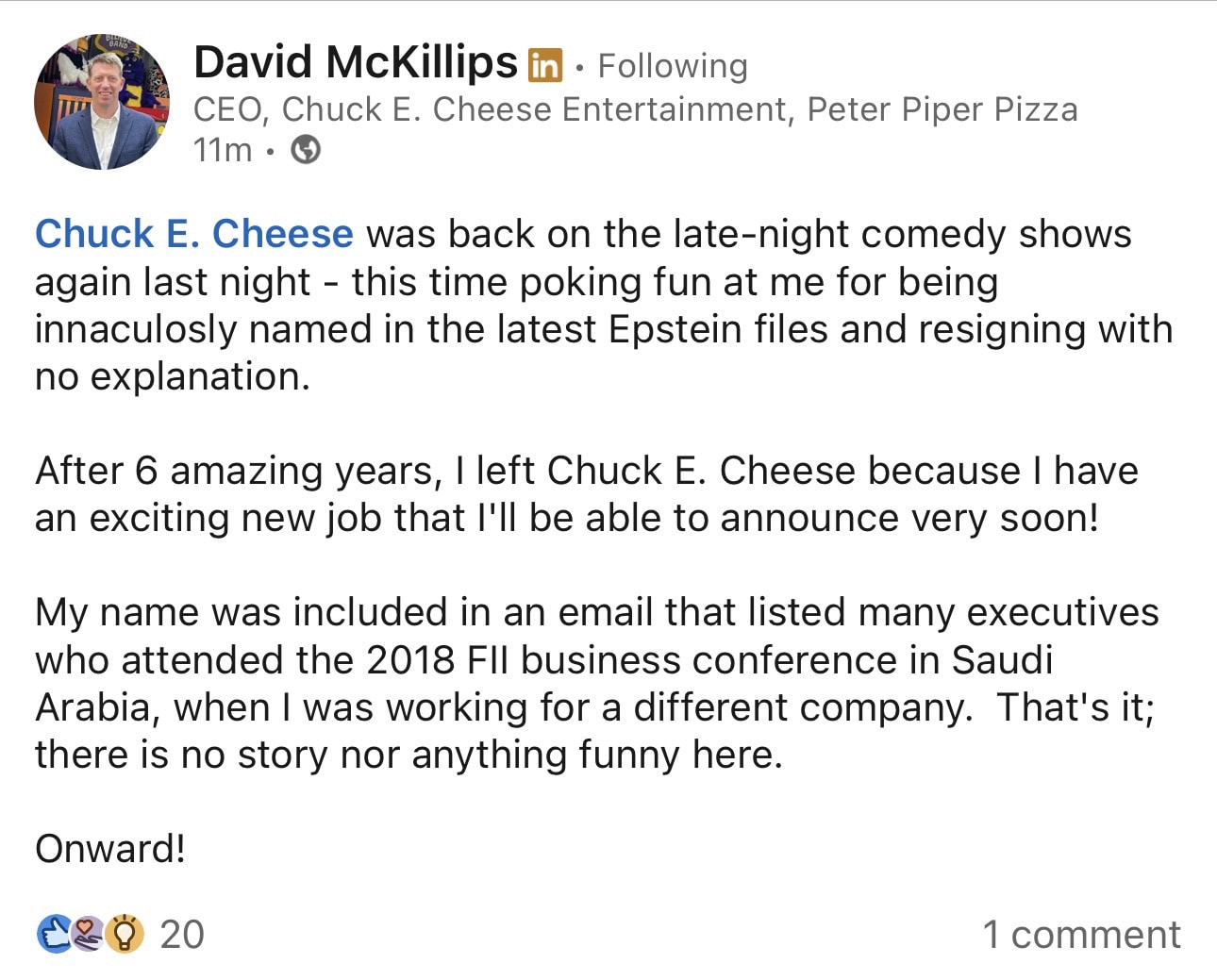 “we got it figured out- he was at an epstein business meeting, so he’s technically in the files, but he’s not a pred.” (me)