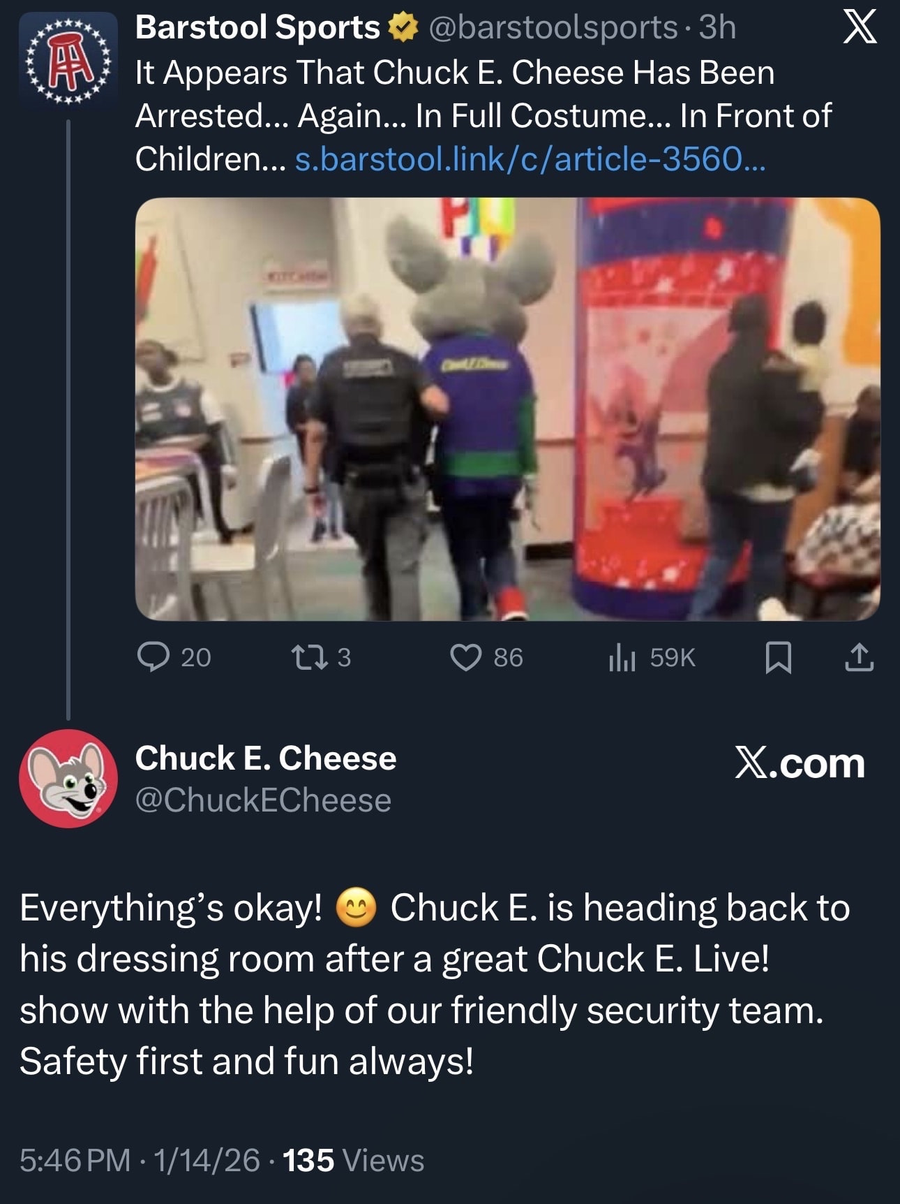 And also, mini PSA! If you’re seeing a video of someone escorting a walkaround to the backroom, this is not a second arrest and is just at a location prone to fights. They had a security guard on hand.