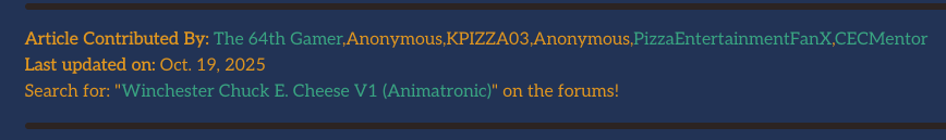 Are you sick of when a store closes, having to update and change every single related article- the stage, the animatronic pages, ect? Well now those tables are auto-generated!