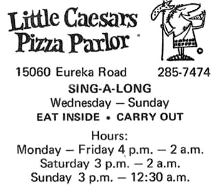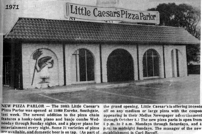 She clarified that it was housed in the building on 15060 Eureka Rd, Southgate, MI 48195 and was a franchise owned by Mike Illitch of Little Caesar’s fame. She then sent me this infographic from the Southgate Historical Society: