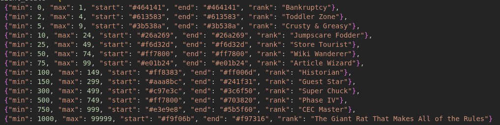 User pages have been cleaned up and again use your forum info, alongside linking your forum profile! Ranks now also have full names. If you’re curious what each rank is and how to get it, the “min/max” below shows how many articles you need to have contributed to- to be in a rank.